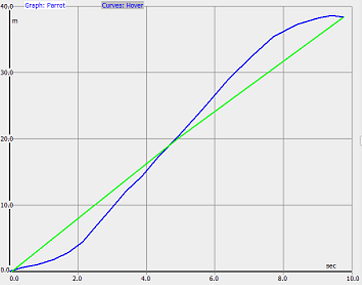 Figure 11 shows the comparison of the altitude over time received from the quad copter (blue curve) for a hovering of 40 meters. The green line is the linear model. Different curves are produced with different combinations of speeds and altitudes. All curves, gathered as family of curves on 3 axis, give a surface of values with a fair accuracy. Linear extrapolation is therefore made for outbound values.